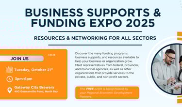 Join us for workshops and events that support entrepreneurs in Nipissing and Parry Sound