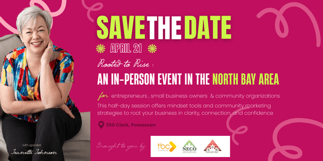 This half-day session offers mindset tools and community marketing strategies to root your business in clarity, connection, and confidence.